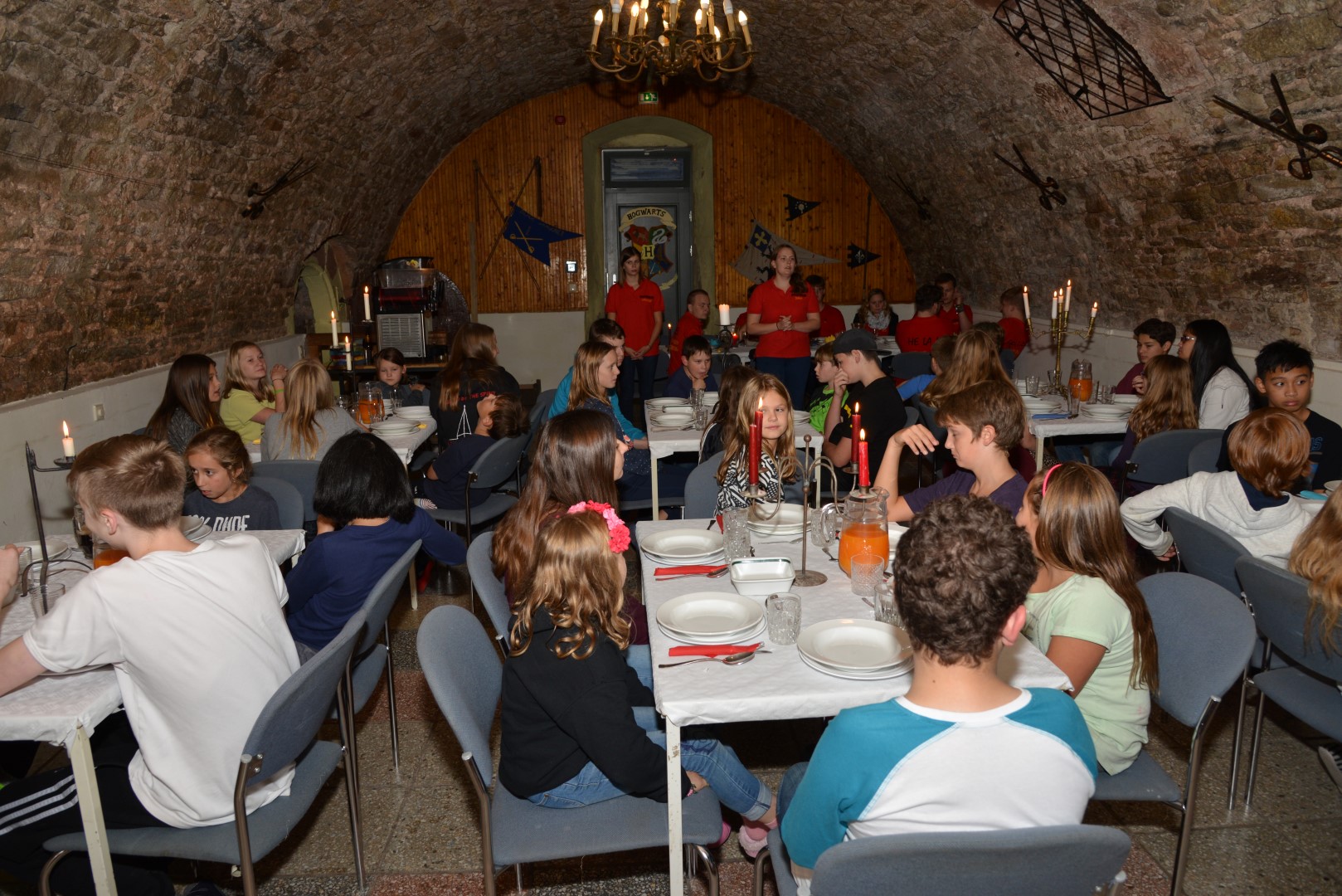 Am Abend gab es dann ein großes Festessen mit Kürbissuppe als Vorspeise, Hähnchen mit Gemüsereis als Hauptspeise und Eis zum Nachtisch. Gegessen wurde in dem großen Gewölbekeller, was für die Kinder noch einmal mehr Aufregung bedeutete. Es hat allen sehr gut gefallen.