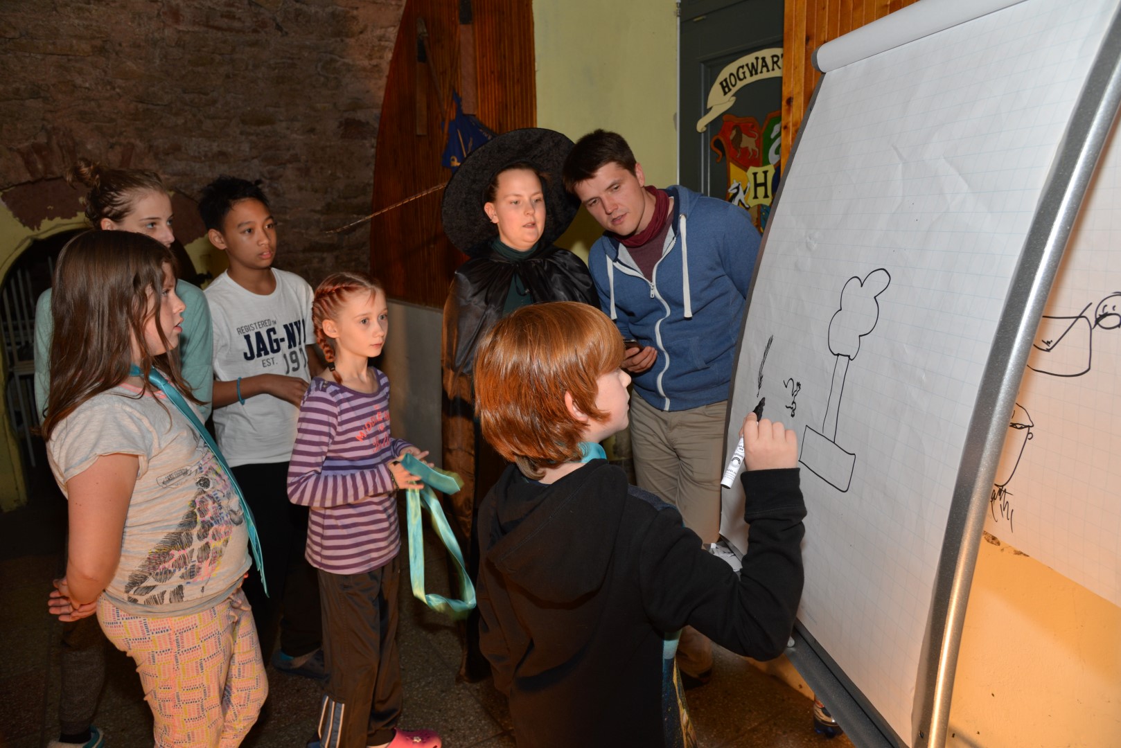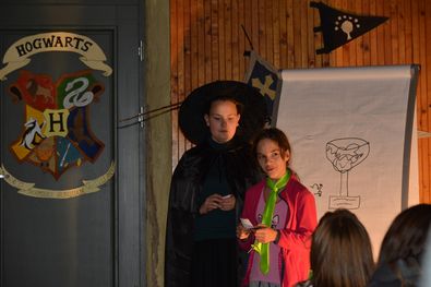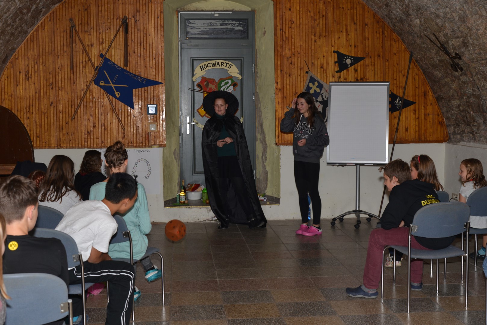 Nach dem Abendessen spielten wir Aktivity, mit vielen Begriffen aus der Welt der Zauberei. Zum Abendprogramm wurde eine Geschichte aus dem Märchenbuch aus Harry Potter, von Beedle dem Barden, vorgelesen. Es gab noch ein Abendgebet und danach gingen die Kinder zu Bett.