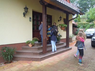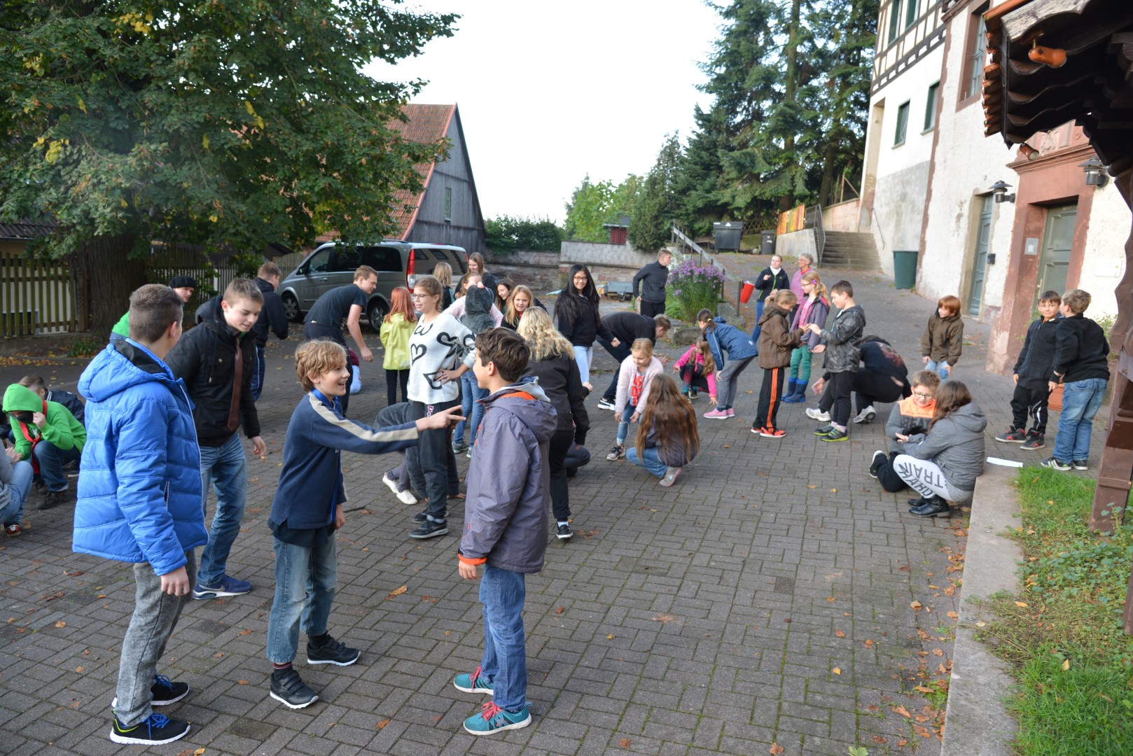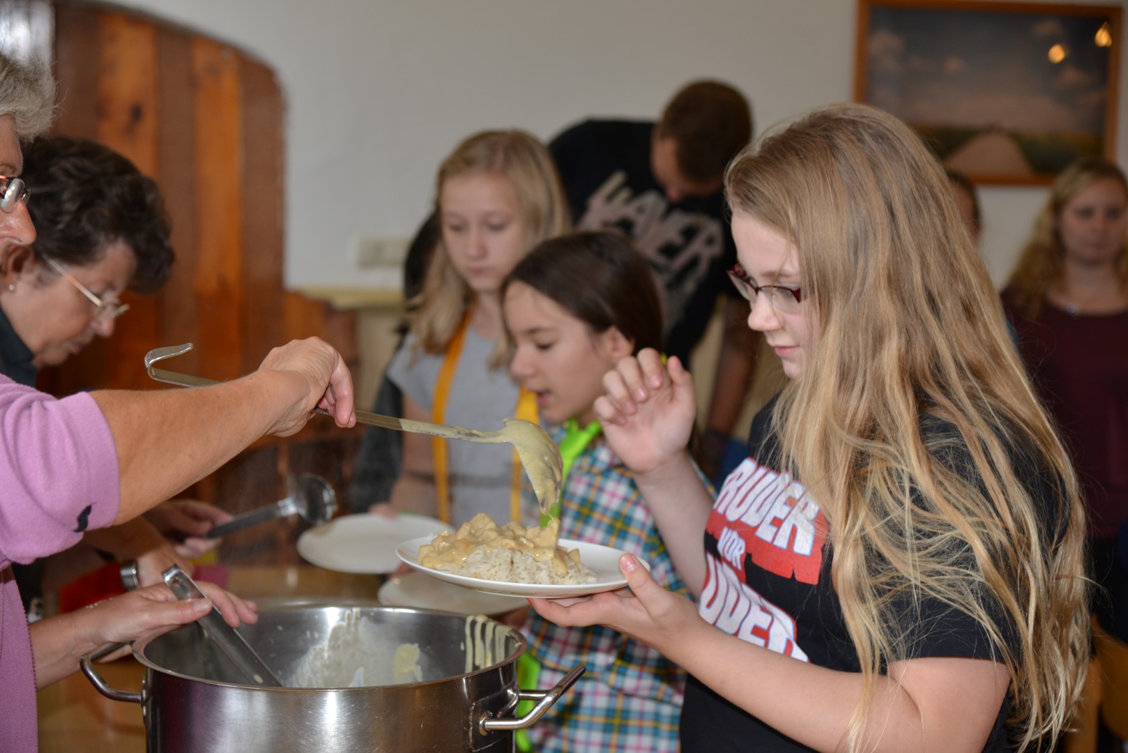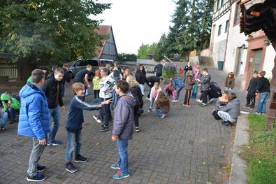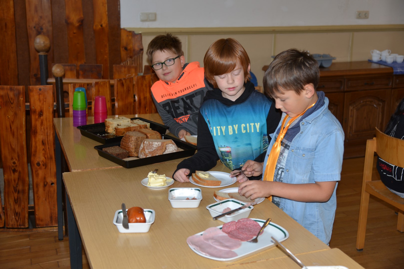 Der erste ganze Tag im Herbstlager ist vorbei und wir haben viele spannende Aktionen gemacht. Am Morgen haben wir zum Aufwachen ein magisches Evolutionsspiel gespielt. Dabei spielten die Kinder Schere, Stein Papier gegeneinander und konnten von der Stufe Drachenei, über Werwolf und Zentaur die Stufe des Hippogreifs erreichen. Nach dem Spiel gab es ein kurzes Morgengebet und wir sind mit allen Kindern und Leitern zum Frühstück gegangen.